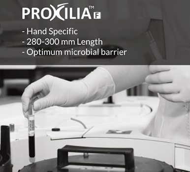 We offer examination gloves of up to 300 mm length in novel, patent-pending packaging.
